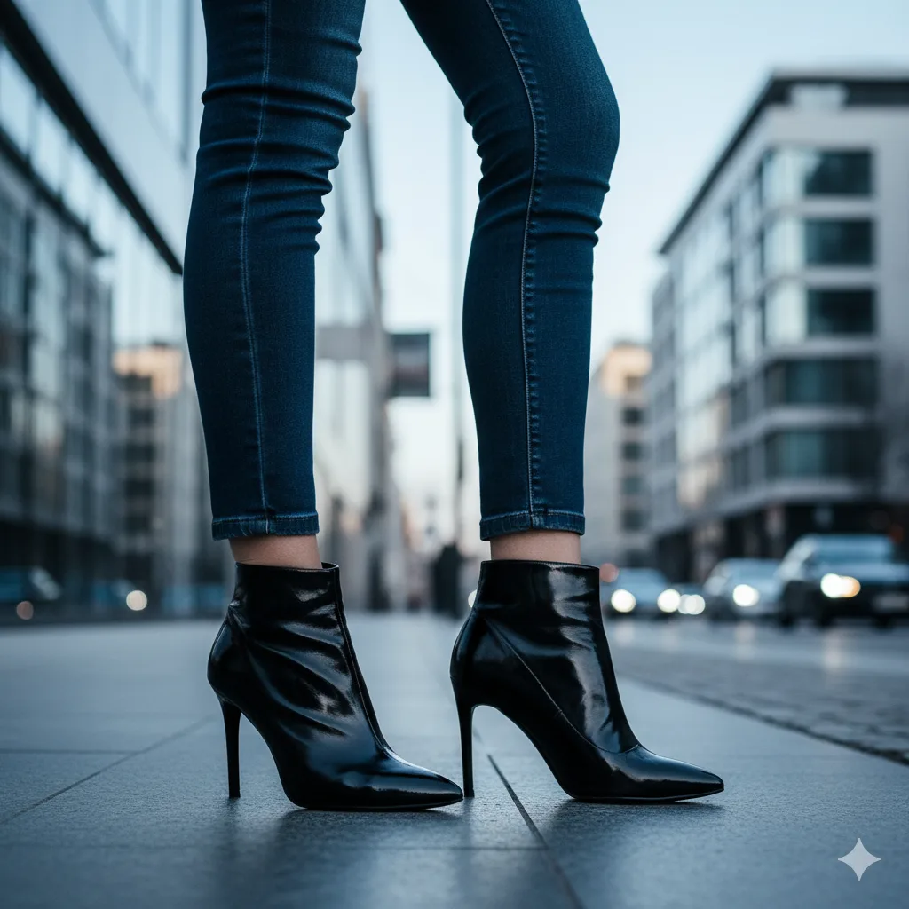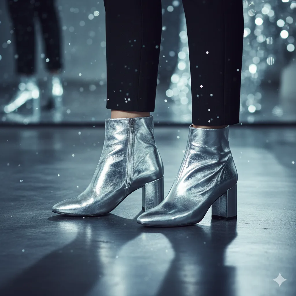 Step into the future with metallic ankle boots — the statement piece of 2025’s winter season. Shimmering silver or gold tones instantly glam up party outfits. Pair them with dark denim or velvet dresses for an ultra-chic touch.
