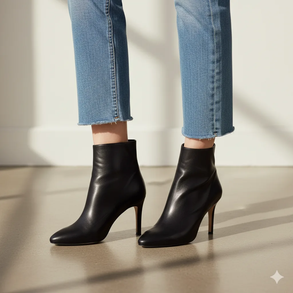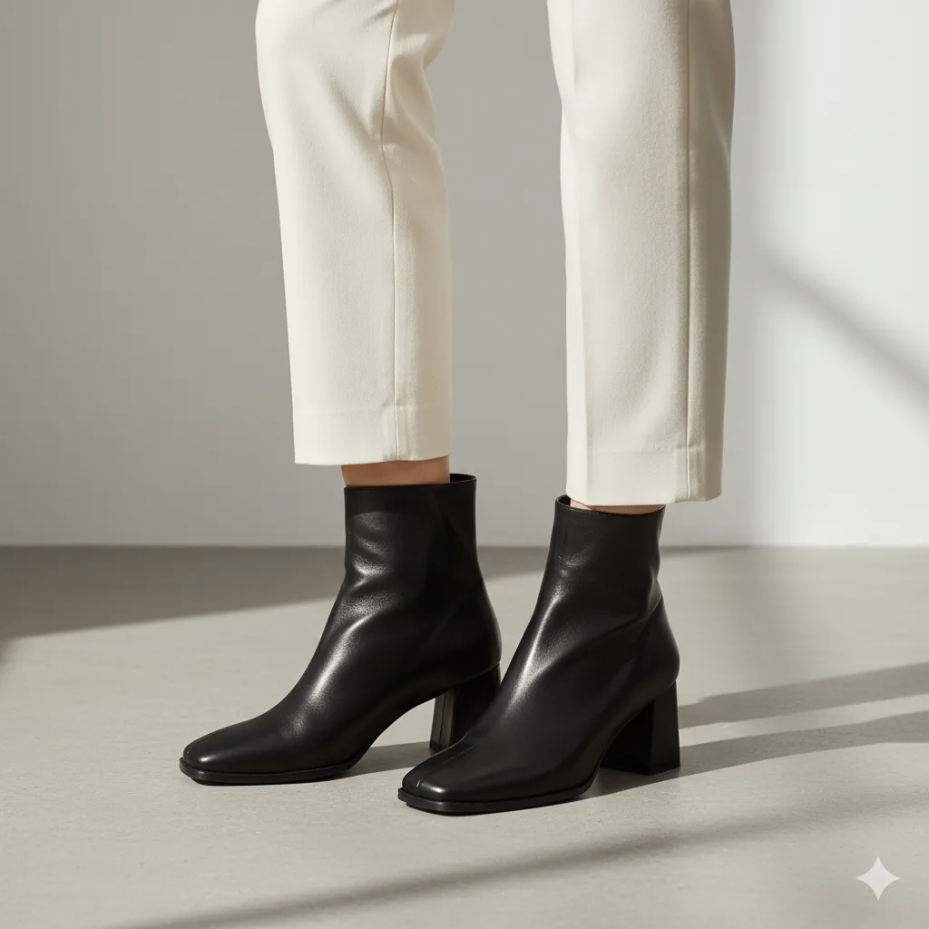 Structured and bold, square-toe ankle boots are a modern favorite. They lend architectural sophistication and comfort. Perfect for career-driven women who love minimal yet striking design. Style with a blazer dress or wool culottes.