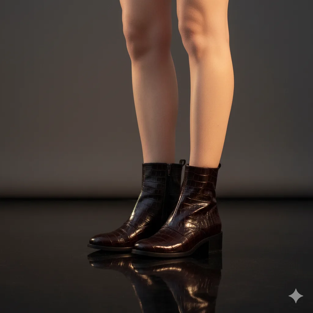 Texture is everything this winter. Croc-embossed leather boots exude luxury and confidence. Perfect for women who love statement fashion. Pair them with sleek black pants or midi skirts to let the texture shine.