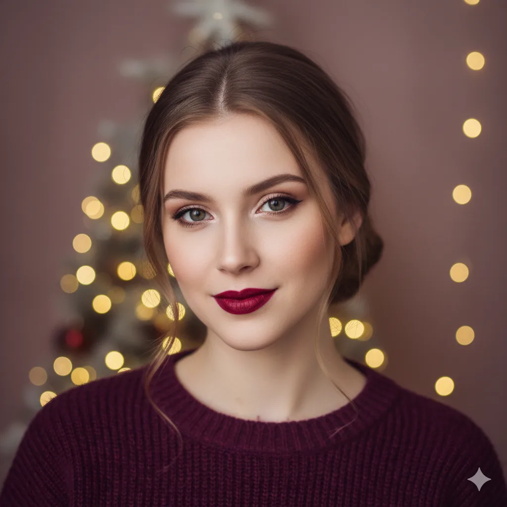 A deep berry lip instantly says “holiday chic.” Great for cool undertones and medium-to-fair skin, it complements cozy knits or sequined gowns. Keep eyes simple—just mascara and subtle shimmer for harmony.