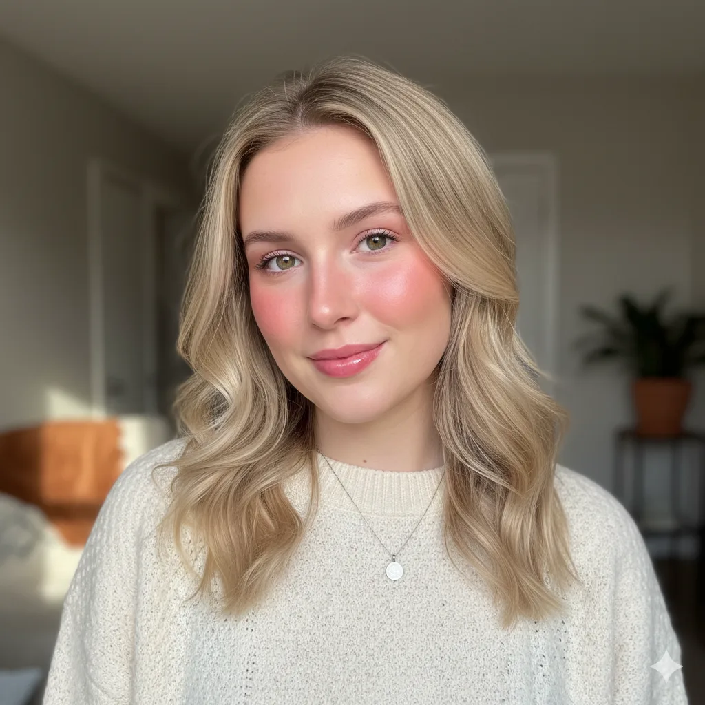 Embrace a fresh-from-the-snow look with rosy blush swept high on cheeks and across the nose. Pair with clear gloss and minimal eye makeup. Perfect for daytime celebrations or outdoor holiday photos.