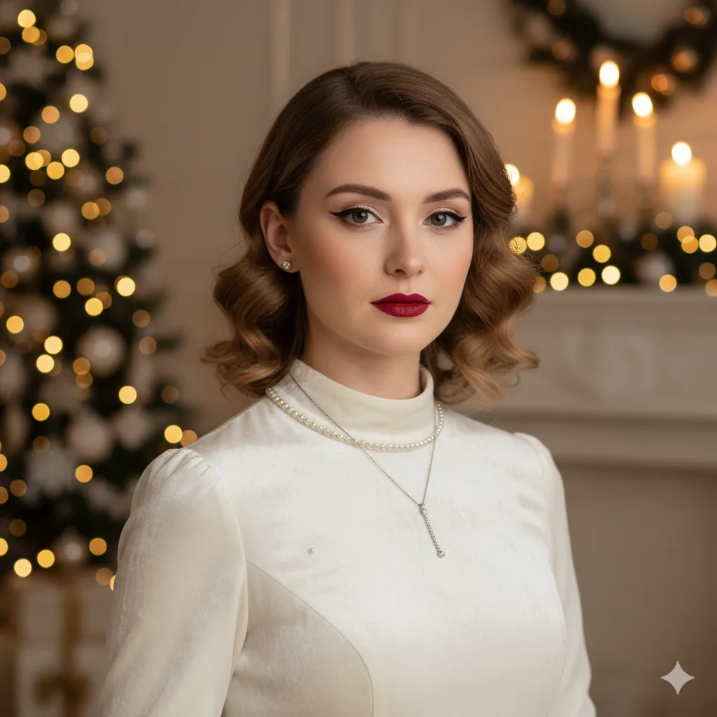 The timeless red lip paired with a sharp wing defines sophistication. This festive staple suits all skin tones and adds instant glam to any outfit. Choose a satin finish for evening events and balance with minimal eye makeup for modern polish.