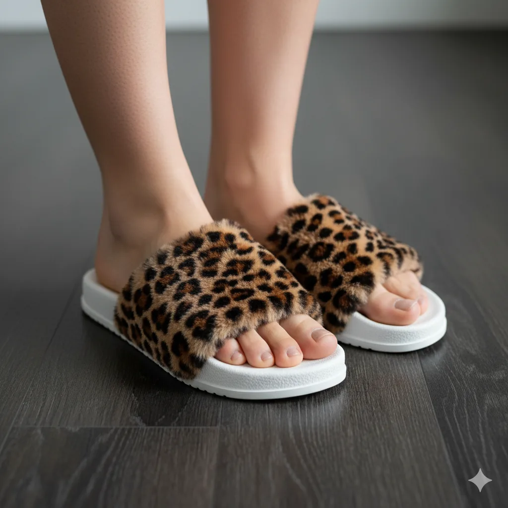 Make a statement even at home with these bold leopard-print faux fur slides. Perfect for women who love fun patterns and trend-forward textures. Pair them with neutral lounge sets for a pop of fashion flair.