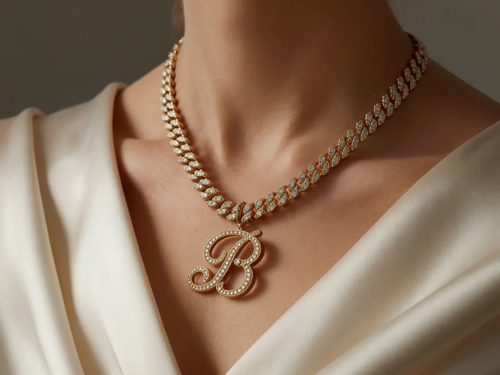 Personalized initial necklaces add sentimental value, whether it’s the bride’s initials or the couple’s shared letter. Works for minimalist brides seeking meaningful jewelry. A fine gold chain ensures the design feels delicate and bridal-appropriate.