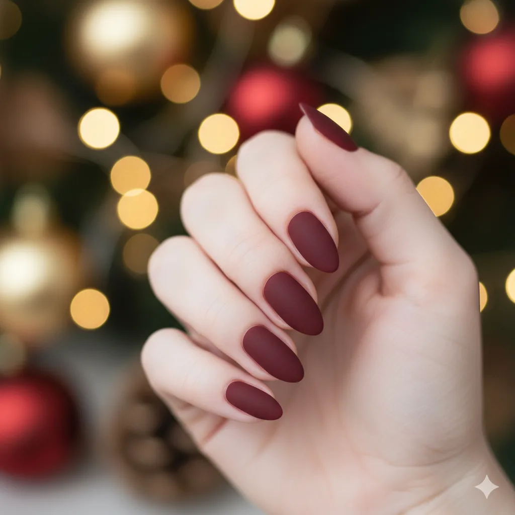 Matte burgundy nails feel romantic and rich. Add a glossy accent nail or gold line art for contrast. Perfect for cozy winter evenings.