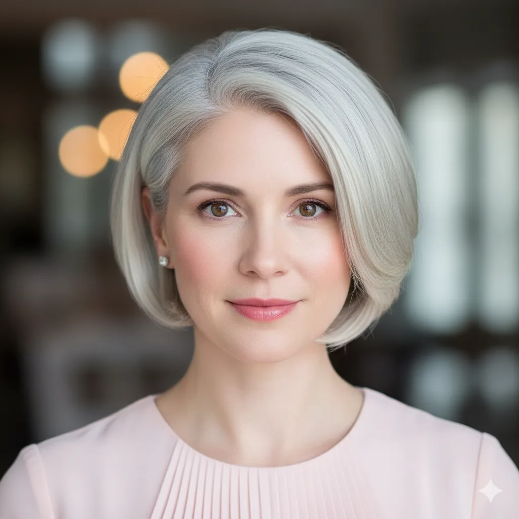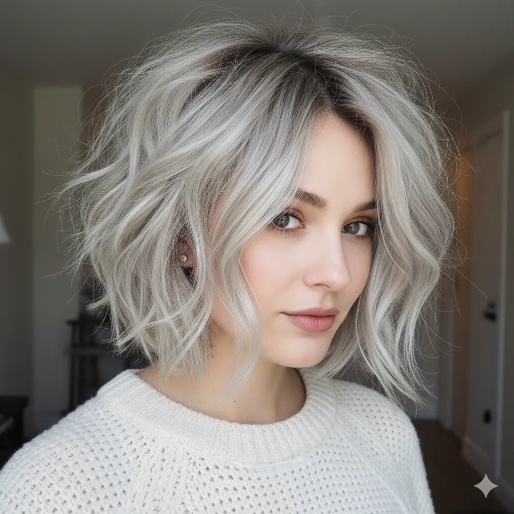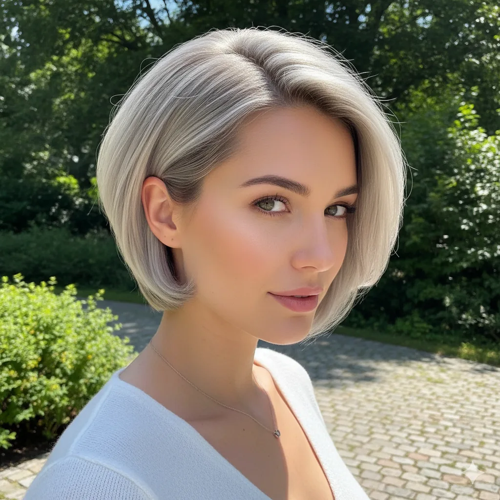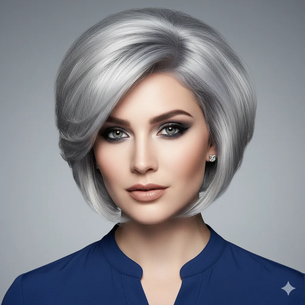 Modern and sophisticated, this style plays with cool silver tones that catch the light beautifully. Works best on medium-density fine hair. Use smoothing serum to maintain shine and structure for this futuristic 2025-ready vibe.
