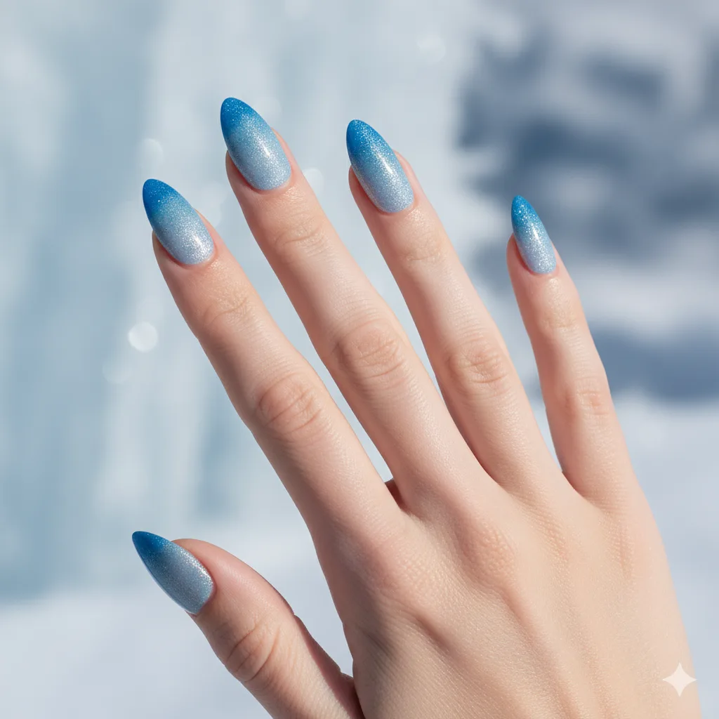Fade from white to icy blue for a fresh, frosty vibe. The ombre design reflects the beauty of winter mornings — ideal for trendsetters who love modern elegance.