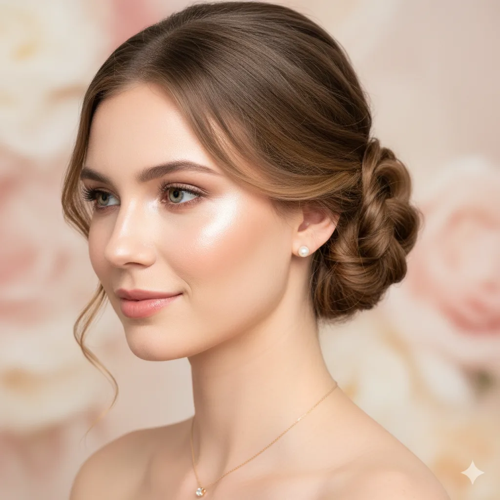 The braided crown bun exudes elegance and grace. Ideal for weddings or formal celebrations, it frames the face while keeping the hair secure. This look is best for long or medium hair and works well with subtle makeup and classic gowns.