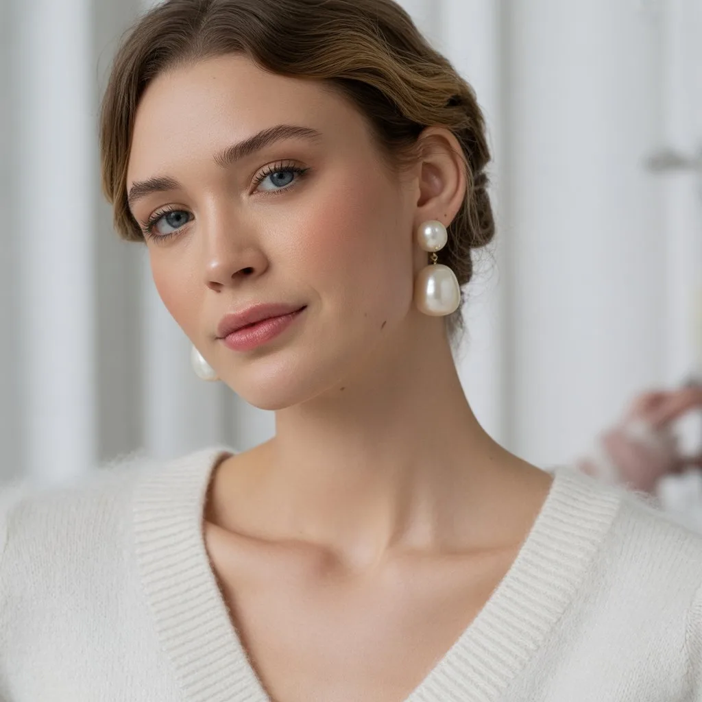 Frosted hoops bring texture and luminosity together. They flatter round and heart-shaped faces, adding playful sparkle to both day and night looks. Style them with a sleek ponytail and turtleneck for that polished, cold-weather glam.
