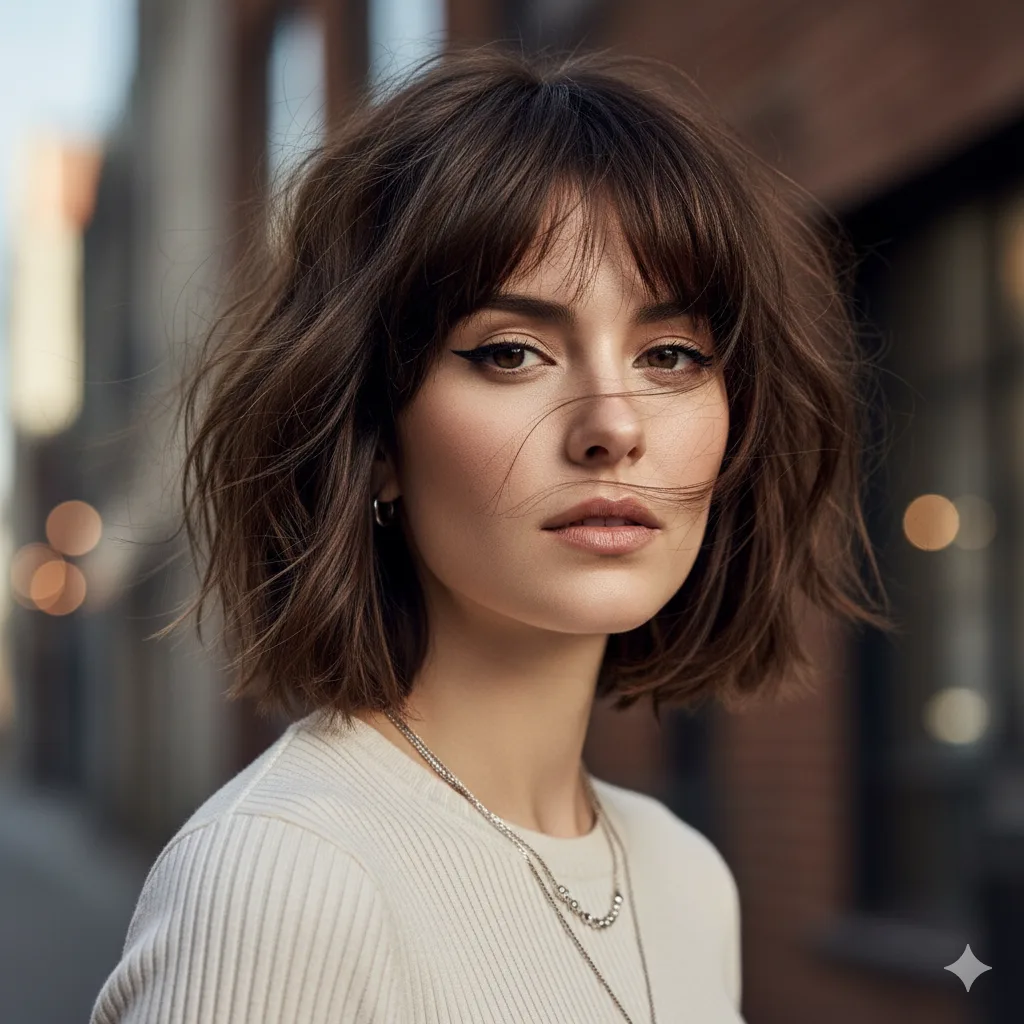 For effortless trendsetters, this messy choppy bob defines casual chic. Tousled layers and soft texture create natural lift. Ideal for fine hair that craves volume — style with dry shampoo or texturizing spray for that lived-in “it girl” vibe.