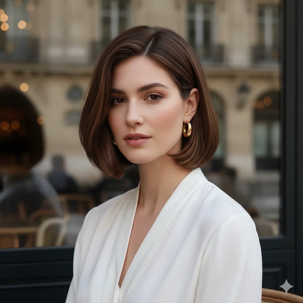 Inspired by French-girl fashion, this chin-length cut is both chic and low-maintenance. Soft layers create volume at the roots while the slightly off-center part enhances balance. Great for petite faces and those embracing minimalist women’s style trends in 2025.