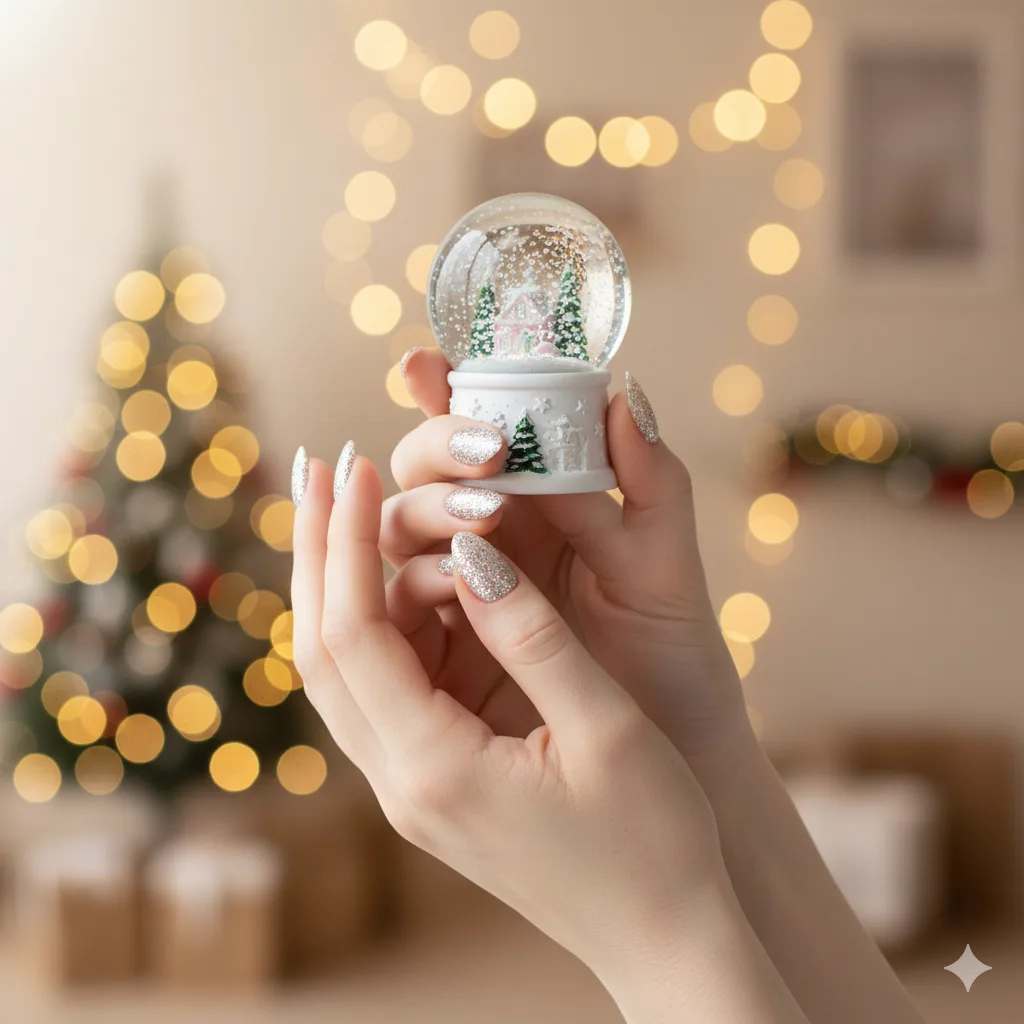 Add hand-painted snowflakes over a milky white base for a magical winter vibe. This style suits feminine aesthetics and special occasions. Pair it with cozy knits and silver jewelry for a perfectly balanced seasonal look.