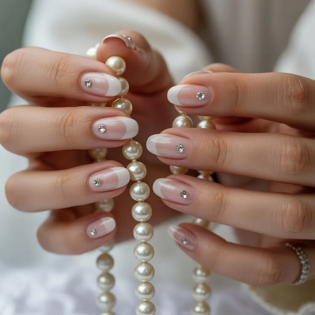 Tiny crystal studs or rhinestones along the base of white nails give a regal winter sparkle. Ideal for special occasions or weddings, this style pairs beautifully with silver rings and delicate jewelry.